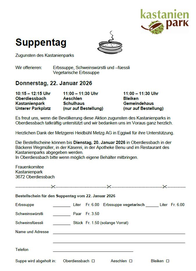 Das Frauenkomitee des Kastanienparks verkauft wieder feine Erbssuppe!
